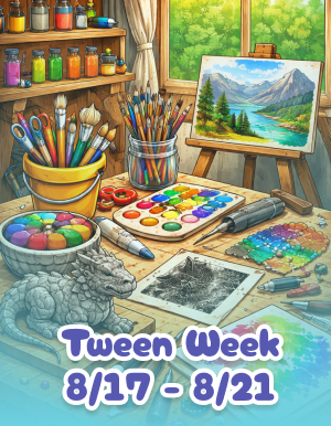 Geared more towards older children (9-14), this week is an opportunity to dive deeper into art projects that require more skill and patience. Children will explore a variety of art making techniques.